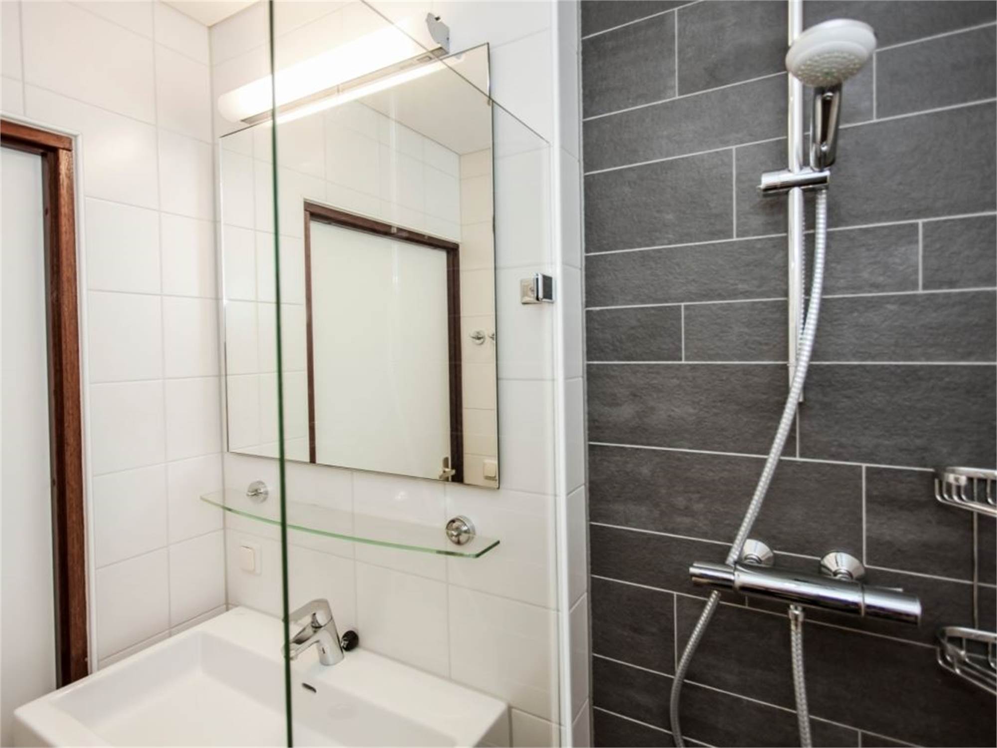 • Bathroom with bathtub or shower cubicle and washbasin