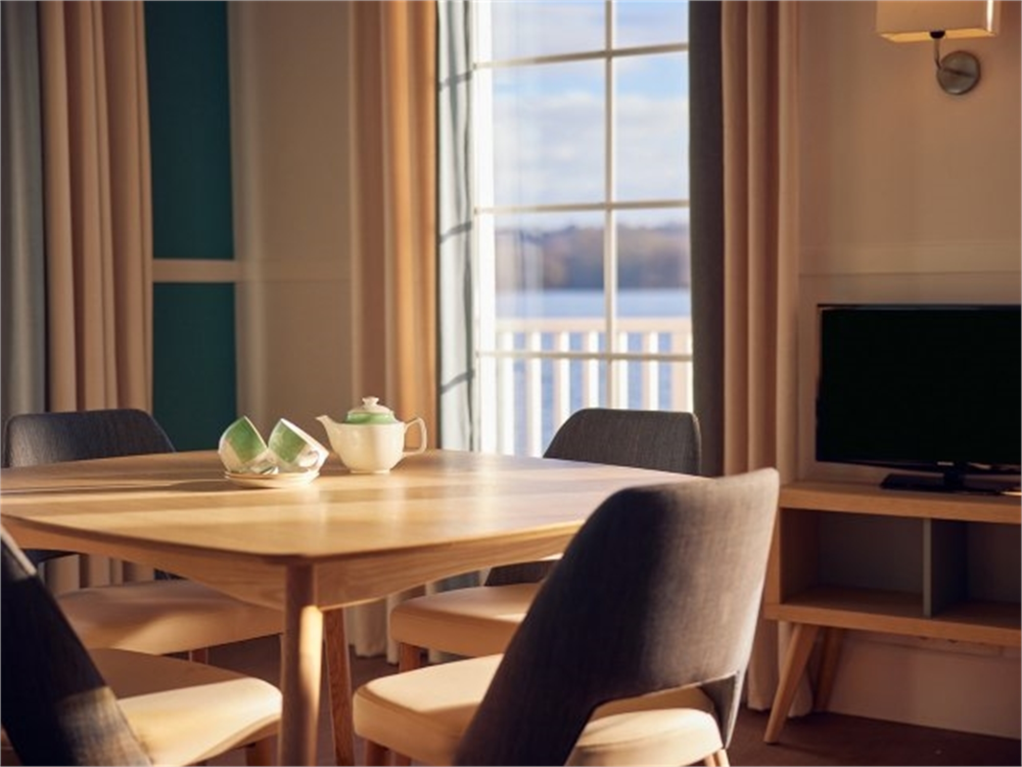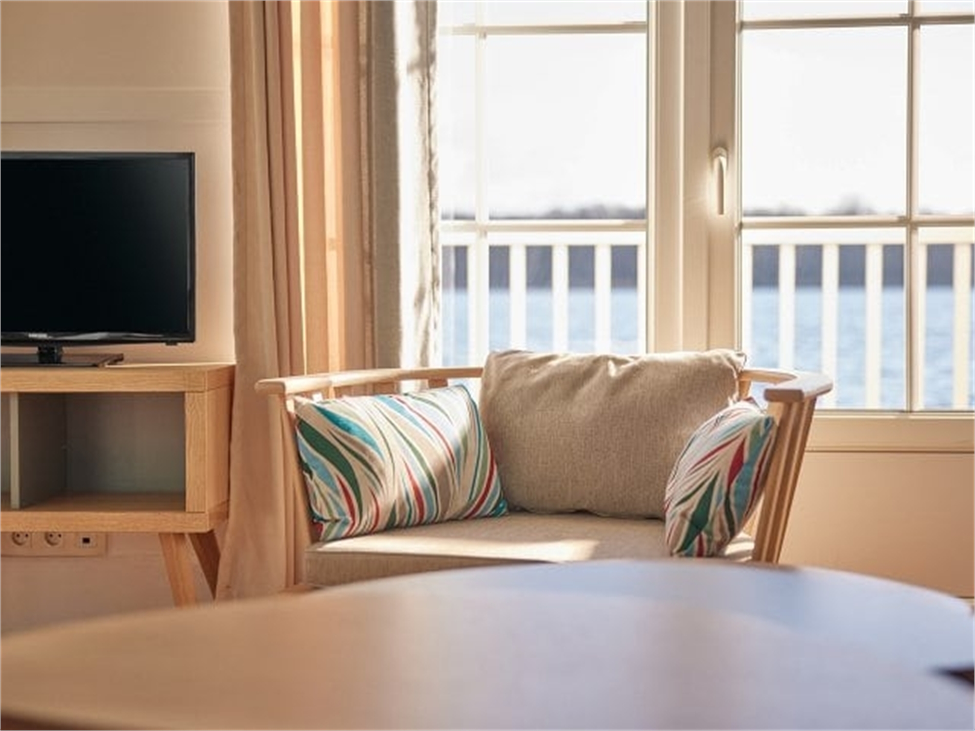 Sit down on your private covered terrace and enjoy panoramic views over the lake. In fact, all Lakeside cottages are right on the water. You will also have great views inside, courtesy of the large windows!