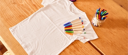 Design your own sports shirt! Decorate it with the stickers and stencils and put it on to cheer on your favourite team or during one of the sports activities. Take it home as a souvenir.