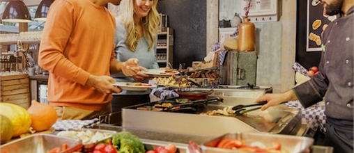 Le Marché is a family buffet with fresh, seasonal produce, regional workshops, and all-inclusive meals-breakfast, lunch, and dinner with drinks like water, soft drinks, beer, and wine.