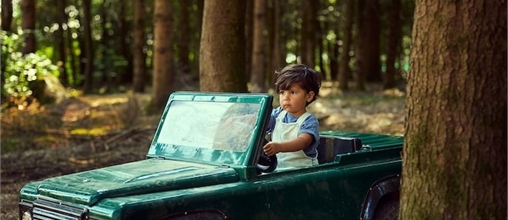 The jeeps have room for two children. The jeeps drive themselves at walking speed, but you stay in control with a stop button.
