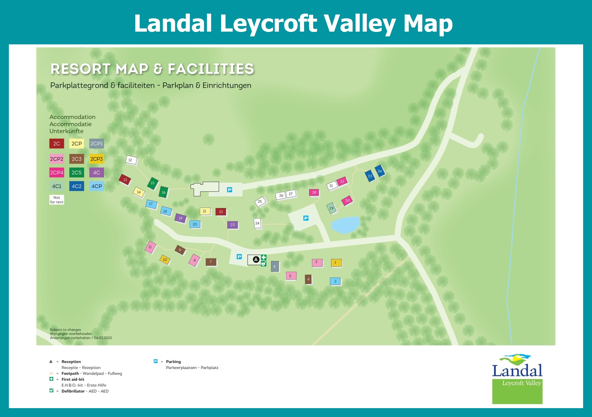 Up-to-date and comprehensive village map of Landal Leycroft Valley with all accommodations and facilities, also available as PDF.