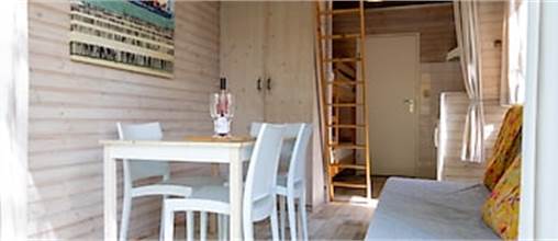 This tiny house for no more than 2 adults and 2 children is located near the beach, and intended for serious campers. The house has a seating area, and the kitchen includes a fridge with freezer compartment and a 4-burner hob. The house has a sleeping loft for 2 people, and 1 bunk bed for 2 children. The bathroom has a shower cubicle and a toilet. It has patio furniture too, and you can use the park's free Wi-Fi.